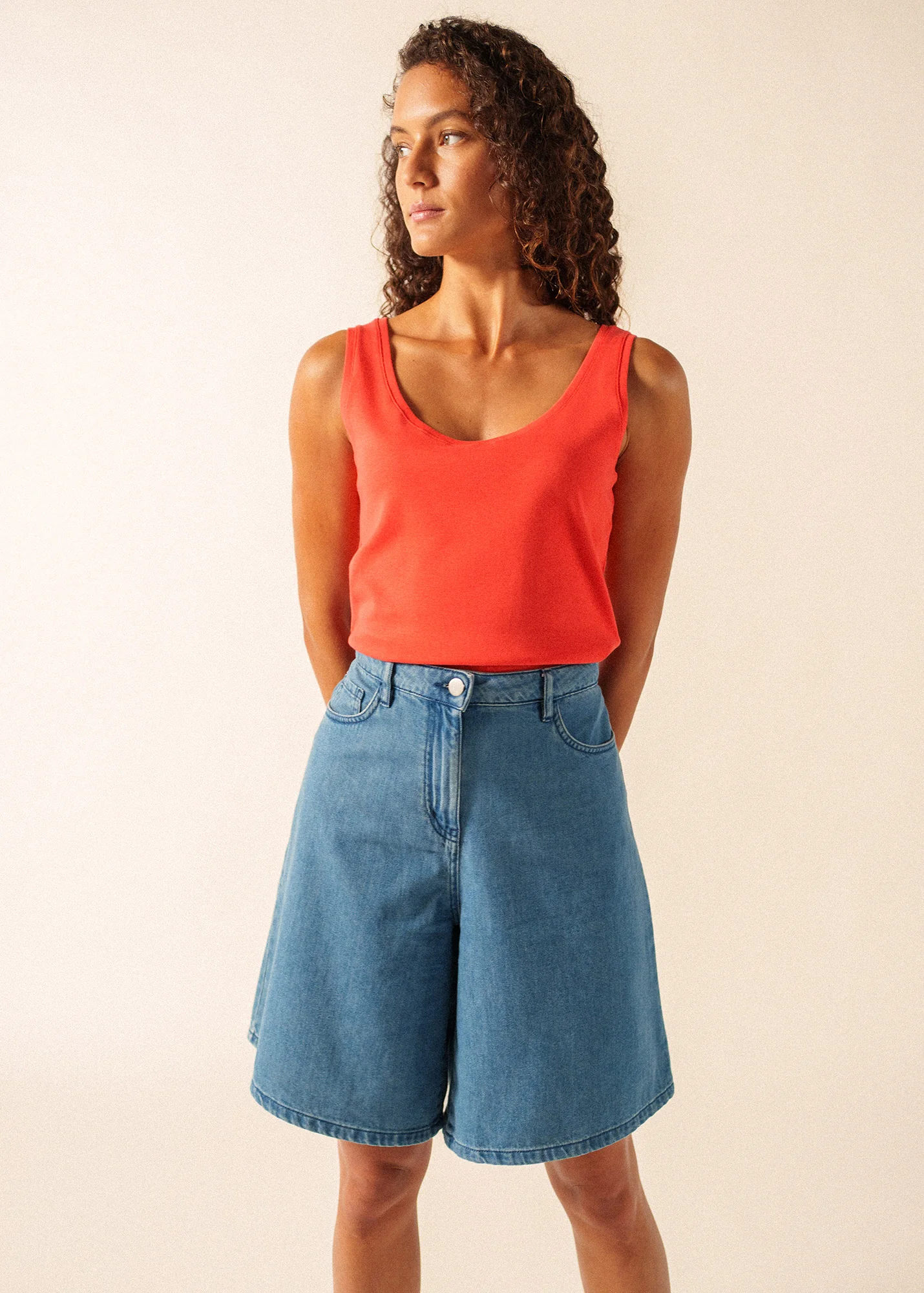 Porté seul pour le plein été ou avec une veste, le débardeur Bastia est un basique facile à coordonner, l’étendue de la gamme couleur permet de multiplier les associations. Avec sa construction en côte 1x1 et son bord-côte le long du col, il présente une jolie tenue et un tombé élégant, adapté à toutes les morphologies.